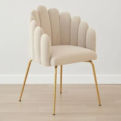 Glam Esstischstuhl im Muscheldesign aus Samt - Goldene Beine...