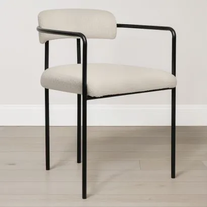 Esszimmerstuhl - Bezogen mit Bouclé-Stoff - Schwarzes Metall...