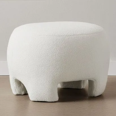 Luxuriöser Fußstuhl Pouf - Weißer Bouclé - Luxe