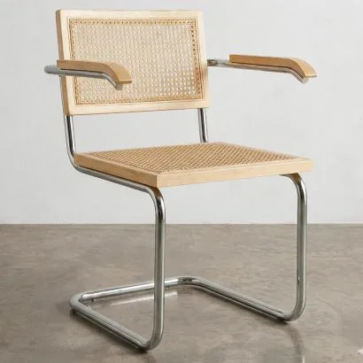 Esszimmerstuhl - Vintage Design - Holz und natürliches Ratta...