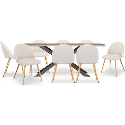 Packung Esstisch aus Holz im Industriedesign (200cm) & 8 Rat...