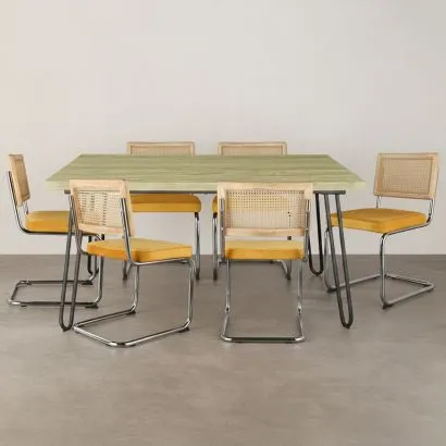 Pack Esstisch - Industriedesign 150cm + 6er-Pack Esszimmerst...