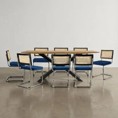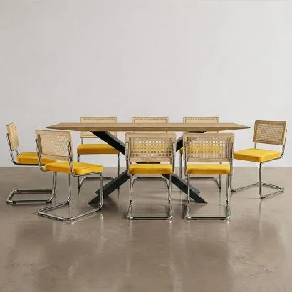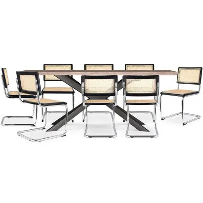 Pack Esstisch aus Holz im Industriedesign (220cm) & 8 Rattan...