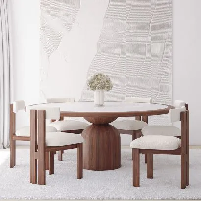 Runder Esstisch-Set mit 6 Holzstühlen - Minimalistisches Des...