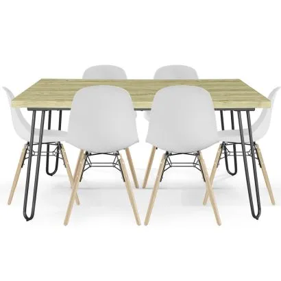 Tischset Hairpin (90x150 cm) + 6 Essstühle Nordische Skögur